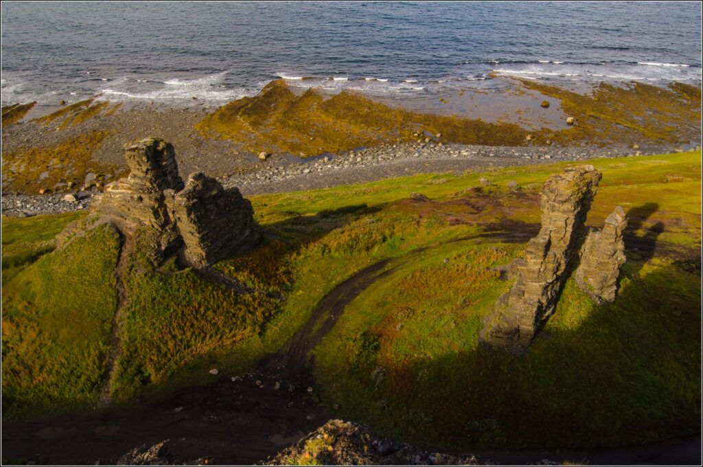 Строго говоря, полуострова тут два: чтобы попасть на Рыбачий, нужно обязательно проехать через Средний — так причудливо Баренцево море омывает эти земли. В образовавшиеся заливы косатки загоняют свою добычу, и увидеть их тут довольно легко: так, я в первый же приезд дважды наблюдал за этими морскими млекопитающими — по пути на мыс Немецкий и обратно.